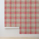 アンティークヴィンテージプレイドミュートレッドグリーンベージュ 壁紙