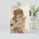 聖キャサリンの日のアンティーク写真フランスのハガキに小さな白い犬を乗せ実在た美しい若い女性。イメージカスタムを復元した。
