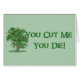 木の写真が付いている私達の惑星の森林伐採の深刻な主題に少しユーモアを加えれば"あなたが私を切った単語、死にます!"