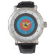 祝名やチームでパーソナライズできるブルズアイのターゲットをテーマにした腕時計でアーチェリーの愛!