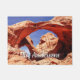 Arches National Park doormat with white script name or message.