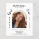 アーチフレーム、名前、学校名、クラス、パーティー詳細内に写真をパーソナライズして追加。白い背景、黒い文字。1枚= 1枚の招待状を印刷したエッジからエッジ