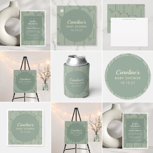 アーチラインモダンアートセージ緑のベビーシャワー 招待状