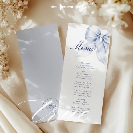 このエレガントな招待状は、サムシング ブルーのブライダル シャワーにぴったりなチャーミングな青いリボンを特徴としています。ソフトなパステルカラーの水彩画でデザインされており、ロマンチックな手書きスクリプトとトレンディなウィットフルなエレメントが組み合わされています。ダスティーブルーのブライダル シャワーに最適なこの招待状は、ボヘミアンコケッタ スタイルを愛する花嫁にぴったりです。