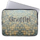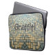 このグレーとマスタードまたはグレーと黄色のレンガラップトップスリーブは、都会の通り上のグラフィティのような名前でパーソナライズする美しく洗練された都市産業デザインである。JLW_Photographyのオリジナル通り写真。