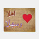 アラビア語のフレーズاهلا وسهلا(「あなたは歓迎」)を持つゲストを歓迎し、明るい赤いハートにアクセントを添えた素朴なバーラップの外観に濃い茶色と白でエレガントに印刷。この耐久性のあるマットは、任意の入り口で中東省の暖しゃれているかい祝ホスピタリティと農家の魅力をブレンドする。アラビア語の家族、語学学生、または心のこもったtouchを持つ文化的な装飾を愛するすべての人に最適。