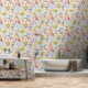 壁紙スタイリッシュは、オレンジと赤の初期紅葉の繰り返しパターンを特徴とし、ライトグレーの背景に青い果実と赤。アクセントの壁やDIYのホームプロジェクトに最適