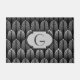 様式化された羽に基づくヴィンテージのアールデコの壁紙パターンの玄関マット-カスタマイズ可能なモノグラムが付いている黒い背景の銀製灰色/灰色の色合い