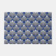ヴィンテージ·アールデコの壁紙·パターンで、深い·コバルト·ブルーの背景に光から中銀の灰色/灰色のサテン勾配を持ち、白でアクセント付けされた、スタイル化された海のシェルに基づく。