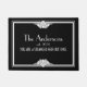 この美しいデザインは、直線と三角形を組み合わせて、この白黒のアールデコスタイルドアマットを楽しめます。 夜と昼のデザインのドアマットで、家の入り口エレガントを飾ります。デザイン。 個人用設定には、家族名や年が含まれます。 「ここは初読めてですが、一度は初めてです」という引用文が含まれます。 全ての文字はアートデコ型スタイル。
