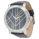 抽象芸術の幾何学的デザインアールデコスタイルで紺色の背景に金色の線のグランジ装飾を伴う