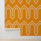 アールデコパターン05 – 鮮やかなガンボージュの上に白 壁紙