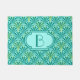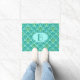 クラシックのデジタル再生,モノグラム付きアールデコファンパターンドアマット – ターコイズ/アクア上の淡い色の孔雀ブルー,金ゴールドで装飾