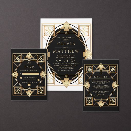 アールデコブラックと金ゴールドジオメト結婚リ アクリル招待状
