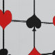 アールデコの黒い太い横線と薄い縦線が交わる所を中心に明るい赤と黒のカードのスーツのシンボルで構成されたカードのテーマ付きオリジナルインスパイアデザインを備え遊て、中央にモノグラム用の大きな文字フィールドを備えた壁紙を提供すカスタム。