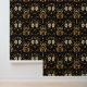 アールデコ黒甲虫金ゴールドフローラ模様 壁紙