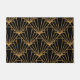このドアマットは、アールデコデザインを有し、黒いフィールドの金ゴールドにダイヤモンドと三角形を含む。