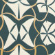 この作品は、流れ、対称インスパイア線、幾何学的な形状を特徴とするアールデコデザインによる複雑なパターンを特徴とする。このデザインは描写深いのティール(緑がかった色)、クリーム、そして微妙な金ゴールドのアクセントの洗練されたパレットで作られ、洗練された外観をエレガント作成する。繰り返しモチーフ型枠は、調和と動きの両方を醸し出す複雑な織り込みパターンである。カーブと鋭角の組み合わせにより、デザインにダイナミックな品質が加わり、カラースキームはタイムレス感とクラシックスタイルを維持する。