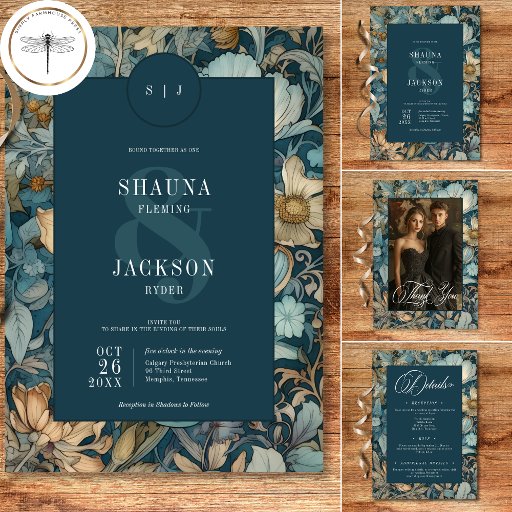 私たちのヴィンテージフローラの詳細エンクロージャカードで過去結婚の魔法に浸る。William Morrisインスパイアの象徴的なデザインによって、これらの招待状はヴィンテージの色合いの魅惑的なブレンドを特徴とする – 深いティール(緑がかった色)ブルース、ソフトなタン、ゴルフ、クリーム。アールヌーボー時代を彷彿とさせる複雑な花の模様は、特別な日に神秘的な魅力を加え、暗闇のtouchを醸し出している。暗いティール(緑がかった色)文字領域はヴィンテージエレガントスクリプトで飾られ、豊かなフローラ背景に印象的なコントラストを提供する。この時代を超越したデザインは、クラシックロマンスの本質を捉え、本当に忘れられない誘いを求めるカップルにとってユニーク最適な選択である。Simple Farmhouse Pressによって作成。