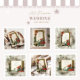 咲くデイジーと結婚ガーベラの花で飾られた黄金のアールヌーボーのフレームを特徴とする明るく楽しいデザイン。アイボリー、オレンジ、赤、緑の豊かな色合いのフローラ組成物は、太陽に照らされた庭の暖かさを連想させ、ヴィンテージの優雅さと明るい魅力をブレンド。自然でロマンチックな春と夏の結婚式に最適なテーマ。