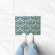 アールヌーボー,金ゴールド,ティール(緑がかった色),ダマスク,フローラ,パターン,シック,V ドアマット