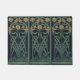 アンティークアールヌーボー装飾本金ゴールド、緑と黒の様式化されたフローラ(ユリ)の背。