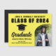 2024モダン年のクラスのカスタムあなたの学名の上品な黒いタイポグラフィと卒業写真を備えた黄色の卒業発表マグネットカード。カスタマイズ黒の手書き文字と黒のグラッドキャップの下で卒業素晴らし年。