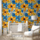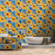 イエローネイビーブルーフローラルパターカラフルンボホシック 壁紙