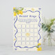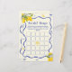 この黄色の青のメイン絞りパーソナライズされたブライダルシャワービンゴゲームであなたのお祝いおもしろいを作る!メイン絞りブライダルシャワーテーマに最適な、このゲームはレモ魅力的ンデザインを備え、あなたのイベントに新鮮なtouchを追加。あなたはメイン絞りブライダルシャワーのレモンパーティーを計画するか、またはレモンブライダルシャワーのテーマインスピレーションを探すかどうか、このビンゴゲームは素晴らし追加である。レモンをテーマにしたブライダルシャワーアイディア、レモンイタリアンをテーマにしたブライダルシャワーアイディア、夏のブライダルシャワーアイディアに最適!