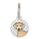 可愛いオリジナルレトリバーのデステイのラブラドール漫画イラストレーションは黄色のコート色の犬を育てる。背景はグレーの犬の前足のプリントのパターンを持っている。反対側には、名前と所有者の電話番号のパーソナル化文字領域がある。