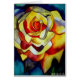 黄色のオリジナルフリーシアの花絵画のサチャ・グロッセルによって水色から登山アートデザインと。このフローラデザインは、明るいカラフルが濃い青の背景に黄色の並置されている。花愛好家のための美しい植物性のインスパイアデザインのクローズアップ、マクロな花