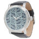 イカットアステカパターン – 藍色とライトブルー 腕時計