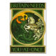 第1次世界大戦のためのヴィンテージのイギリスの募集ポスター。 roundelのイメージはセントジョージドラゴンを殺害するです。 議会の募集委員会による元の20世紀な(1915年の)石版から。 複製権所有©の2013年のpadreの芸術
