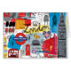 Global Travel III by Farida Zaman.画像は、ロンドン、イングランドの様々な有名なランドマークと都市の象徴的な要素を特徴とする。| SID23322
