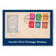 イスラエルの最初の郵便切手であるファーストコインを入れた初日のカバー。別名Doar Ivri"(ヘブライ語のポスト)とも呼ばれる。青いカチェットは「5 Iyar 5708」(1948年5月16日)の日付をリストしている。イスラエルが独立宣言した後、5月4日(金)に英国の委任状の切手とユダヤ国家基金(Keren Kayemet Le'Israel)が印刷したラベルは、5月16日(日)に新しい国が切手を発行できるようになるまで、合法的な切手と考えられていた。5月22日までのエルサレムを除くすべての都市および町でオーバープリントされたJNFラベルの使用。最初の正式な切手「ファーストコイン」の印刷は、マンデートが終わる数週間前に開始され、紙の欠如、適切な印刷機とミシン目の機械によって妨げられた。新しい国の名前は決まっていなかっただろう – ユダヤ?イスラエルの国?イスラエル?その切手は「Doar Ivri」(ヘブル読ブルポスト)と決まった。ドーア・イヴリの切手は、ユダヤ人とローマの第一次戦争と後のバーコチバの反乱の古代コインを使用して、チェコのユダヤ人移民オッテ・ウォルリッシュによって設計された。最初の正式な切手「ファーストコイン」の印刷は、マンデートが終わる数週間前に開始され、紙の欠如、適切な印刷機とミシン目の機械によって妨げられた。新しい国の名前は決まっていなかっただろう – ユダヤ?イスラエルの国?イスラエル?その切手は「Doar Ivri」(ヘブル読ブルポスト)と決まった。ドーア・イヴリの切手は、ユダヤ人とローマの第一次戦争と後のバーコチバの反乱の古代コインを使用して、チェコのユダヤ人移民オッテ・ウォルリッシュによって設計された。
