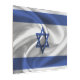メタルプリントとイスラエルのフラグの波状生地スタイルデザイン。このデザインはイスラエル国旗の色とデザインを特徴とし、美しい波打つマテリアルの質感を持つ。この国旗のデザイン素晴らしは、イスラエルから来た誇りを持ったことを示す方法だ。