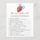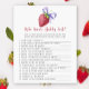 かわいい女の子の赤ちゃんシャワー招待カードは、イチゴと弓の水色のイラストレーションを特色にする。文字は「ベリーの甘いベビーが途中にある」と言う。