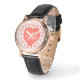 イニシャルカスタムモノグラムコーラルウォーター色ハート 腕時計