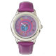イニシャルモノグラムパープルピンクブルークロックアートガール子供へズウォッチ。レザーストラップ。