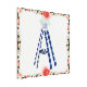 イニシャルレターAの上に白い花がアクセント付いた大きなマーキズシェイプのサファイア上でダイヤモンドをカットし、中央の台形のカットとマーキズカットでサファイア宝石のイメージで作られたサファイアは9月の誕生石である。青は喉のチャクラ。