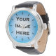 このカスタム時計テンプレートはシンプル、時間をマークする黒いティックとクラシックの時計デザインである。このカスタマイズ製品には、上に示すように独自の背景画像または写真をアップロードする。