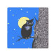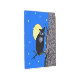 紺色の夜空を背景に黄色い星を持つ黒い木の枝に青い目を座らせた黒いフクロウのイラストレーションを持つメタルウォールアートプリント。