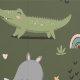 かわいいおもしろいワニ、カバ、サイのイラストレーションの壁紙。