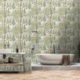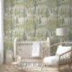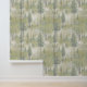 スタイルのファンタジーアートイラストレーションモダンは、明るく明るく真っ暗な緑の松の木々をクリーミーな背景で描いている