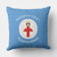 エンジェルはイギリスの旗、またはセント・ジョージ・クロスの服を着て、あなたのハヌカーの装飾のための屋外の枕の上に今年のホリデーシーズン。複数の宗教を持つ家族のために設計された英語の天使は、白い四角い円の中央に飛ぶ。青い四角の背景がハヌカーテーマを完成。パーソナライズする名前の追加年を追加カスタマイズ。または、独自の文字を追加。