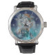 インディアンのドリームキャッチャーとエスニックの部族の頭の狼 腕時計