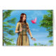 緑の森に描写ピンクの鳥を持つ美しい先住民のアメリカ人女性の3Dデジタル