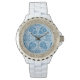 白い背景にレースフローラルパターフェイクンを施した美しいライン石ホワイトエナメルもしウォッチ。ポッシュ&パインターリーの「インディゴレース」コレクションの一部は、インジゴレースのパタカスタマイズーンタイルを回転またはサイズ変更することにより、この時計を簡単に行うことができる。このパターンは任意の腕時計にも適合する。