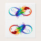 白い背景描に美しい虹の羽を持つ芸術的に無限のシンボル。タトゥースタイル。