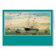 インマン汽船会社を促進するヴィンテージ旅行イラストレーション,スモークスタックと一緒に帆のリギングと遷移デザインの初期の蒸気船を示す。